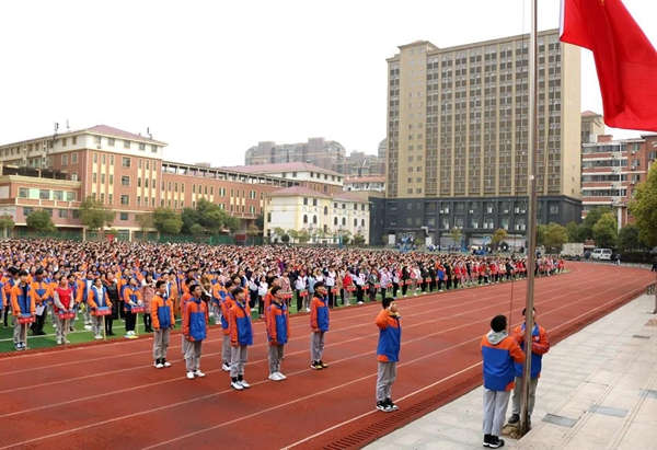 新的學期新的希望。儀式上,政教處主任胡主鵬帶領全校同學一起宣誓。
