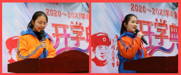 春天是奮斗的時刻。初中部柳佳欣、小學部陶樂樂同學代表現外象湖所有的學子們新的學期的信心和決心,樹立遠大的理想,制定新的學習目標,勤奮學習成才,做全面發展的好學生。