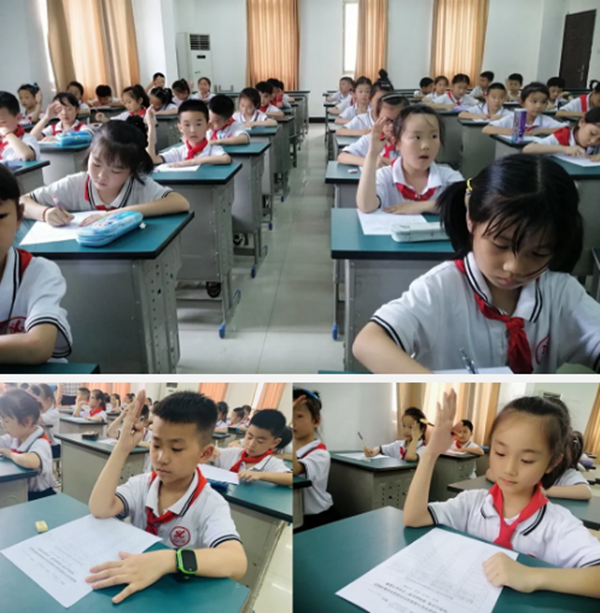 比賽現(xiàn)場(chǎng),由教師讀出四字詞語(yǔ),學(xué)生將聽(tīng)到的詞語(yǔ)寫(xiě)在答題紙上。賽場(chǎng)上,小選手們個(gè)個(gè)表現(xiàn)不凡,看著他們比賽時(shí)專注的神情,瞧著他們端正雋秀的字跡,可以看出他們個(gè)個(gè)都進(jìn)行了全面的賽前準(zhǔn)備。比賽期間,同學(xué)們嚴(yán)格遵守紀(jì)律,都能做到安靜專注地聽(tīng),認(rèn)真快速地答,工整規(guī)范地書(shū)寫(xiě),細(xì)致入微地檢查。