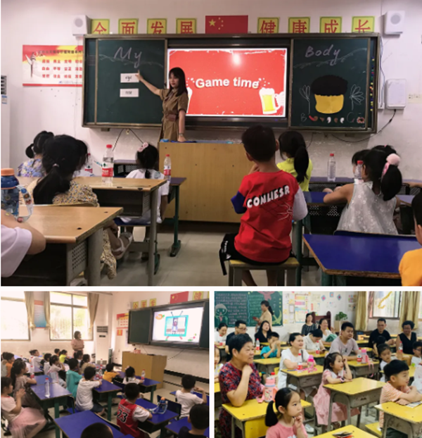 感受完英語(yǔ)的魅力后,家長(zhǎng)和孩子們走進(jìn)教室,一同體驗(yàn)課堂教學(xué)過(guò)程,領(lǐng)略課堂藝術(shù)魅力。文字王國(guó)、孫悟空打妖怪、找規(guī)律、My body……學(xué)校小學(xué)部老師們精心準(zhǔn)備了一堂別樣的課堂。小朋友們看著和藹可親的老師,眼睛里充滿著期待和欽佩。個(gè)個(gè)被精彩紛呈的課堂所吸引,個(gè)個(gè)用渴望的眼神注視著這即將到來(lái)的小學(xué)生活。