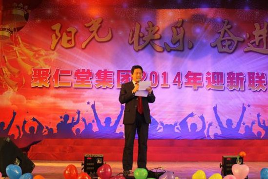 開場歌舞結(jié)束后,4位靚麗而充滿朝氣的主持人出場,宣布聚仁堂集團(tuán)2014年迎新聯(lián)歡會正式開始。隨后,董事長胡樂平發(fā)表致辭,首先他代表集團(tuán)董事會,并以個人的名義,向所有關(guān)心、支持、參與聚仁堂集團(tuán)建設(shè)的各位領(lǐng)導(dǎo)、各界朋友致以衷心的感謝;向集團(tuán)各公司、院校任勞任怨、辛勤工作的所有員工、教職工,以及默默支持我們工作的家屬們致以誠摯的問候和衷心的祝福!他指出,過去的一年,是聚仁堂人自強(qiáng)不息、努力拼搏的一年,全體員工腳踏實地、積極進(jìn)取,在大家的共同努力下,集團(tuán)在地產(chǎn)、教育、醫(yī)藥、農(nóng)業(yè)、金融等各板塊均取得了可喜的成績:集團(tuán)投資建設(shè)的聚仁國際2.5產(chǎn)業(yè)園、新藥廠等重點項目目前均進(jìn)展順利;聚仁·哈佛公館、聚仁·萬象都會盛大開盤火爆熱銷。同時,集團(tuán)放眼全國,積極尋求外省地產(chǎn)開發(fā)項目,并取得很好的項目投資成果;聚仁堂藥業(yè)銷售勢頭見長,傷風(fēng)停、生力片等明星產(chǎn)品供不應(yīng)求;工商學(xué)院、現(xiàn)外兩校區(qū)在各類比賽中屢獲大獎,招生人數(shù)創(chuàng)下新高;迪斯尼、園外園兩幼兒園順利通過評估,晉升南昌市二級幼兒園;萬基建筑公司成立等等。這些成績的取得凝聚著集團(tuán)每個員工的心血和汗水,是全體員工眾志成城、團(tuán)結(jié)奮斗、盡心竭力拼搏的結(jié)果。最后,董事長胡樂平再次感謝大家的相伴隨行,感謝大家的辛勤工作給聚仁堂集團(tuán)注入發(fā)展血液。?