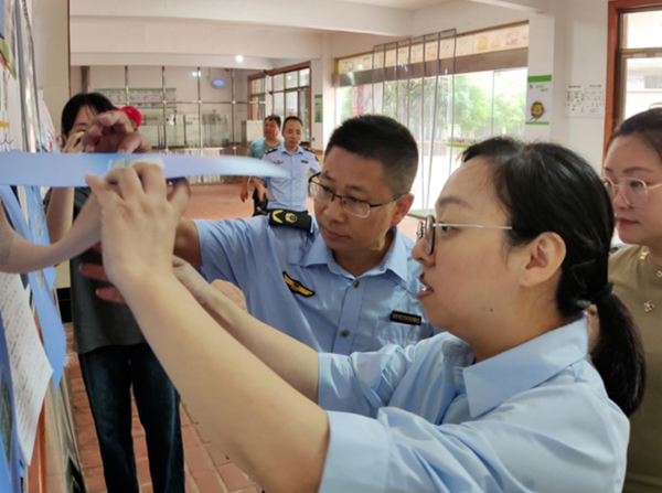 2023年9月14日上午,南昌縣縣委常委統戰部皮部長、八月湖街道辦市場監管局李局長等領導一行冒著蒙蒙細雨深入我校進行安全檢查,全面檢查了學校食堂開學后的師生伙食服務情況及食品衛生安全工作。