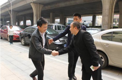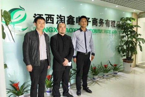 胡國輝一行受到江西淘鑫電子商務有限公司總經理相梓午(右)的熱烈歡迎