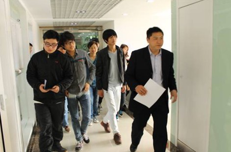 淘鑫公司人力資源部負責人帶領同學們參觀公司各部門