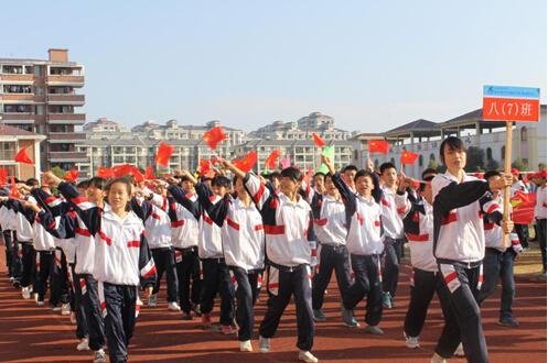 雄壯的《運(yùn)動(dòng)員進(jìn)行曲》奏響后,入場(chǎng)式開(kāi)始。走在最前面的是儀仗隊(duì)的同學(xué)們,他們手托國(guó)旗、校旗,手舉彩旗,氣宇軒昂,精神抖擻。隨后,各年級(jí)代表隊(duì)昂首闊步依次入場(chǎng),接受大會(huì)主席團(tuán)的檢閱。他們或高舉橫幅,或手持標(biāo)語(yǔ)牌,或齊呼口號(hào),表達(dá)著自己的信心與熱情。
