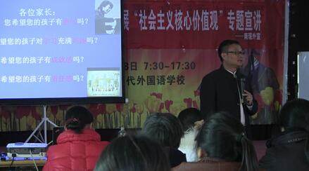 ? 為進一步增進家校之間的聯系,促進學校與家庭、教師與家長的交流溝通,更好的形成家校教育的合力,12月17日下午,南昌現代外國語學校舉辦了“智慧父母,成長導航”家庭親子教育服務公益活動,著名“親子教育專家、中國親子英語第一人”陳林老師為家長做了精彩報告,學校會議報告廳座無虛席,除我校學生家長外,其他外校學生家長近200余名慕名前來聽取了報告。
