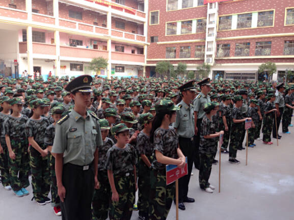 8月22日上午,南昌現代外國語學校(象湖校區)2016級初一新生軍訓開營儀式在學校操場隆重舉行。學校部分行政人員、初一全體班主任老師、武警中隊的11名教官及2016級初一近500名新生參加了開營儀式。儀式由王桂紅副校長主持,校長李金玉致辭,副校長胡卓越宣布軍訓紀律及安排,李教官和新生代表符昕悅講話。