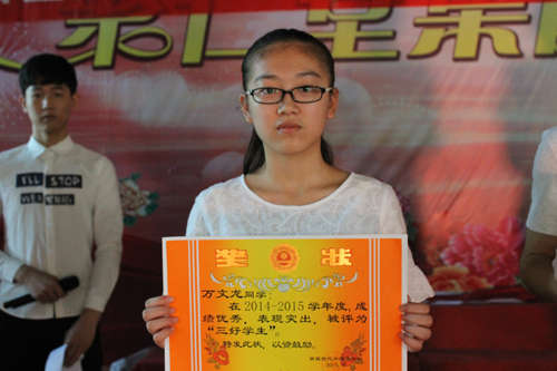鄧校長宣布了優秀教師、先進工作者,文明之星,進步之星,優秀班干,三好學生名單,劉雁華等校領導為獲獎班級和個人頒獎并合影留念。
