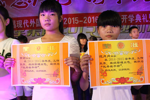 9月10日上午,南昌現代外國語學校(迎賓校區)2015年開學典禮暨教師節表彰大會在學校五樓會議廳隆重舉行。校長劉雁華,初中部校長鄧華,小學部校長傅紹玫等校領導及各班班主任和3000多名學生參加典禮。