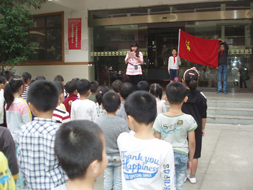 儀式上,首先,老隊員們鄭重地為新隊員系上鮮艷的紅領巾,互敬隊禮。面對隊旗,新隊員舉起右拳,莊嚴宣誓志愿加入中國少年先鋒隊,并高喊先鋒隊呼號“準備著,為共產主義事業而奮斗……”。隨后,大隊輔導員重溫了少先隊的發展歷史,向新隊員提出了希望和要求,勉勵他們爭做一名優秀的少先隊員,嚴格規范自己的行為,努力學習,團結協作。最后,新隊員們紛紛表示,要從現在做起,從身邊的點滴小事做起,為紅領巾增光添彩。
