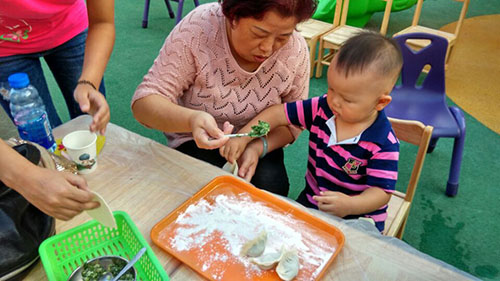活動期間,孩子們為自己的爺爺奶奶表演了自己精心準備的的歌舞節目,把自己親手制作的賀卡交給了自己的爺爺奶奶并湊在他們耳根旁說上一句祝福的悄悄話,親手為自己的爺爺奶奶端上一杯熱氣騰騰的菊花茶,剝一片桔子,送上一塊重陽糕,和爺爺奶奶們一塊包餃子、品嘗餃子,濃濃的愛意,溫馨的氣氛在幼兒園中彌漫。