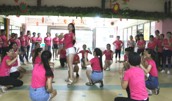 精彩紛呈的團隊展示拉開了拓展活動的帷幕。來自各個幼兒園的老師們,通過多彩多姿同時各具特色的的節目表演,充分展示著她們在教學工作中的青春活力。舞臺上她們臉上綻放的笑容和精心設計的造型,讓場下所有的觀看者都印象深刻,稱贊不已。