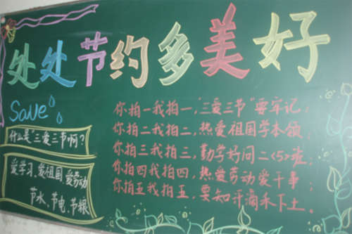 為貫徹習近平總書記向全國青少年提出的“愛學習、愛勞動、愛祖國;節(jié)水、節(jié)電、節(jié)糧”的號召,使“三愛三節(jié)”教育不斷深入,近日,南昌現(xiàn)代外國語學校(象湖校區(qū))結合學校的實際,積極開展“三愛三節(jié)”主題黑板報評比活動。