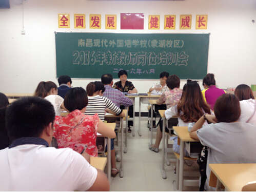 為使招聘的新教師熟悉現外,熱愛現外,熟悉同事,盡快地融入現外這個和諧大家庭,8月29日下午,南昌現代外國語學校(象湖校區)2016年新聘教師崗前培訓在多媒體教室舉行。今年新招聘的全體教師參加了培訓,會議由校長李金玉主持。