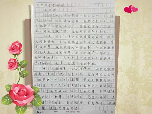 在感恩父母的環(huán)節(jié)中,主持人展示一系列關(guān)于自己父母的問(wèn)題向同學(xué)們提問(wèn),考查同學(xué)們對(duì)自己父母的了解程度。緊接著播放視頻《人的一生,感恩教育》 ,短片中浮現(xiàn)出我們從小到長(zhǎng)大成人及父母從年輕到年邁各階段的特征,旨在培養(yǎng)學(xué)生的感恩之心。視頻過(guò)后,展示的是一名叫章鈺同學(xué)寫(xiě)給爺爺奶奶的一封信。章鈺三歲時(shí),父母就分開(kāi)了,爺爺奶奶撫養(yǎng)了章鈺整整十年。在這十年間,爺爺奶奶承擔(dān)了太多本該章鈺父母承擔(dān)的責(zé)任。寒冬里,他們起早床,為孫女準(zhǔn)備早餐,洗衣服。晚上,悉心為孫女蓋被子。十年間,章鈺在慢慢長(zhǎng)大,爺爺奶奶卻在慢慢變老。借此機(jī)會(huì),章鈺同學(xué)利用攢下的零花錢(qián),為爺爺奶奶獻(xiàn)上了一份真摯的禮物,感謝他們的養(yǎng)育之恩。此時(shí),《時(shí)間都去哪了》從耳邊傳來(lái),三人相擁而泣。情到深處,感人肺腑,全場(chǎng)為之動(dòng)容,在座的校長(zhǎng)、老師、家長(zhǎng)、同學(xué)們都流下感動(dòng)的淚水。借著章鈺同學(xué)對(duì)爺爺奶奶的深情傾訴,主題班會(huì)來(lái)到了此環(huán)節(jié)的最后一部分,部分同學(xué)給父母獻(xiàn)禮,同學(xué)們紛紛感激父母的養(yǎng)育之恩,對(duì)自己的不懂事表示深深的愧疚。