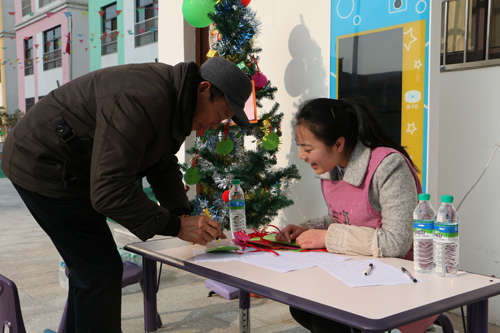 園外寒風襲人,園內春意融融,五彩的氣球、飄飛的彩旗、繽紛多彩的圣誕樹,將活動的現場渲染得異常火爆,每個人的臉上都寫滿了歡樂和喜悅。