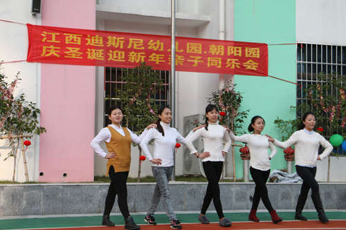 活動開場,全體幼兒、家長手牽手入場圍城一個大圓圈共跳舞蹈“鈴兒響叮當”;緊接著,園長和家長代表各自發言來表達對幼兒園節日的祝福;發言結束后,幼兒和教師一起表演,孩子們將自己學到的舞蹈全方位的展示給爸爸媽媽們;家長和孩子們一起參加的親子游戲將幼兒園的快樂氣氛推向又一個高潮,親子游戲精彩紛呈,“剝桔子”、“搶椅子”、“蹲蹲樂”、“大腳踩小腳”等親子游戲贏得了大人們孩童般的天真笑聲,孩子因開心而樂,家長因滿意而笑,快樂匯聚成幸福的海洋,讓大家深深感受到江西迪斯尼幼兒園朝陽園這個大家庭的溫暖。