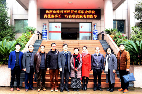 新年伊始,萬象更新。1月11日,云南經貿外事職業學院董事長肖薇、院長顧振宇一行六人來我集團考察交流,向我集團院校單位傳經送寶。集團董事長胡樂平,集團院校管理部總監張貴忠,工商學院黨委書記劉富林,副院長胡國輝、曠強軍等熱情接待來客,并在工商學院第一會議室舉行了交流會。