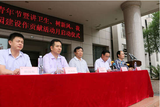 啟動儀式上,學院黨委書記劉富林致辭。劉富林指出,在五四青年節97周年之際,召集學院青年學生代表在這里隆重舉行“講衛生、樹新風,我為文明校園建設作貢獻”活動啟動儀式,更顯得具有特別的意義。致辭中,劉書記要求當代青年大學生從講文明愛衛生做起,真正做一個現代化國家“四有”新人,認真踐行社會主義核心價值觀,不斷提高青年大學生文化素質,為國家富強和民族振興作貢獻。