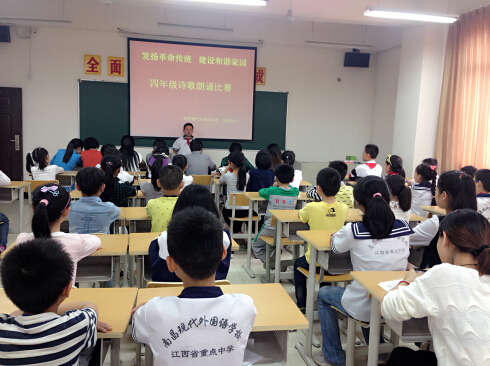 為進一步加強學校文化建設,陶冶學生的情操,營造朝氣蓬勃、積極向上的校園文化氛圍,南昌現代外國語學校(象湖校區)在多媒體教室成功舉辦了以 “發揚革命傳統,建設和諧家園”為主題的詩歌朗誦活動。