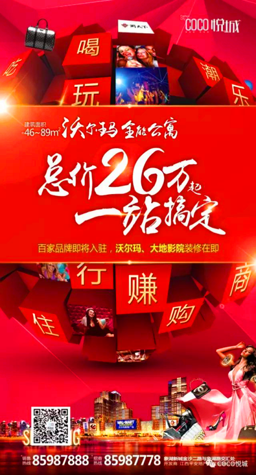 象湖沃爾瑪-COCO悅城購物中心項(xiàng)目定位于時(shí)尚、品位、家庭、體驗(yàn)購物中心,集大型超市、國際影院、大型情景室內(nèi)特色餐飲街、兒童教育親子體驗(yàn)娛樂和大型室內(nèi)情景潮流生活館為一體,通過打造昌南“時(shí)尚地標(biāo)”、 “吃喝玩樂聚集地”、“全品牌系列生活館”、“休閑娛樂首選地”,樹立高品質(zhì)城市時(shí)尚生活新標(biāo)志。總價(jià)26萬起全能公寓,吃喝玩樂購全能共享家!百家品牌即將入駐,沃爾瑪目前裝修在即。你,還等什么呢?