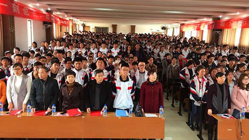 會(huì)議在雄壯激昂的國歌聲后,李金玉校長、陳勇鋒副校長作為校領(lǐng)導(dǎo)代表在全體師生的共同見證下,拉開了百日沖刺的倒計(jì)時(shí)牌匾,那醒目的“100天”字樣燦爛生光,照進(jìn)了每一個(gè)師生的心間。會(huì)上,李金玉校長作了動(dòng)員報(bào)告,她講到,中考的路上不單單是知識(shí)的較量,更重要的是心態(tài)的較量,還有毅力、耐力、意志品質(zhì)的考驗(yàn)。每個(gè)同學(xué)都要有鍥而不舍、孜孜以求、拼搏奮斗的精神,要有贏的強(qiáng)烈欲望。并希望全體教師以最佳的備課方案、優(yōu)質(zhì)的課堂教學(xué)、真摯的感情與學(xué)生們同舟共濟(jì),做好最堅(jiān)強(qiáng)的后盾。請(qǐng)同學(xué)們把父母的聲聲叮嚀,師長們的殷切期盼化著動(dòng)力。用100天給自己一個(gè)機(jī)會(huì),用100天為自己創(chuàng)造一個(gè)奇跡,用100天送給關(guān)愛你的人一個(gè)“驚喜”。讓我們挑戰(zhàn)2017年的中考,再創(chuàng)學(xué)校的輝煌!