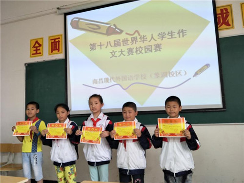 初夏的南昌,驕陽似火。南昌外國語學校(象湖校區)組織了第十八屆世界華人學生作文大賽校園預選賽。我校小學二至五年級,初中一、二年級2000多學生積極參加了此次活動。按照學校制定的南昌外國語學校(象湖校區)第十八屆世界華人學生作文大賽活動方案,從5月份開始,各班學生在語文老師精心指導下進行寫作,同學們積極參與活動。五月底各班推出五篇優秀作品參加校級評比。學校共收到小學生撰寫的作品200余篇,中學生作品90余篇。6月初,學校緊鑼密鼓地組織老師對各班推選出來的優秀作品組織評選,共評出特等獎10名,一等獎15名,二等獎20名。其中特等獎作品將代表學校參加南昌市“第十八屆世界華人學生作文區域大賽”。
