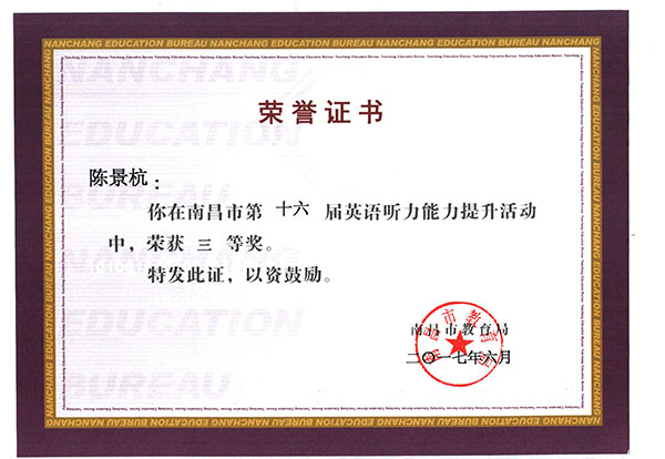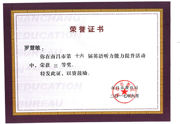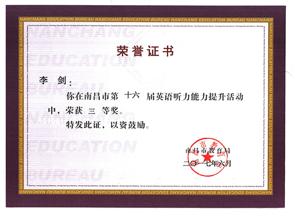 近日,在南昌市第十六屆英語(yǔ)聽(tīng)力能力提升活動(dòng)中,南昌現(xiàn)代外國(guó)語(yǔ)學(xué)校迎賓校區(qū)4名教師、高二、高三學(xué)生共計(jì)10名學(xué)生在活動(dòng)中取得了優(yōu)異成績(jī)。