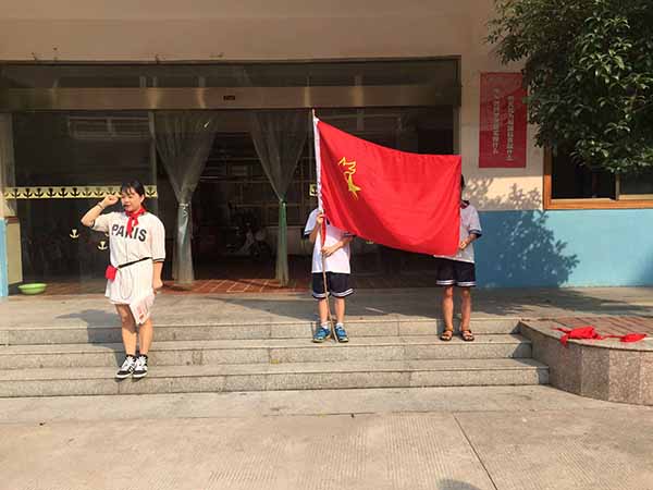 儀式中,歌聲嘹亮,隊(duì)旗、紅領(lǐng)巾格外鮮艷,在活動(dòng)中,由六年級(jí)的老隊(duì)員為180名新隊(duì)員佩戴了紅領(lǐng)巾,全體新入隊(duì)的同學(xué)在大隊(duì)輔導(dǎo)員謝珊珊老師的帶領(lǐng)下,在莊嚴(yán)的隊(duì)旗下,高高地舉起右手大聲宣誓,時(shí)刻準(zhǔn)備著為共產(chǎn)主義事業(yè)而奮斗!整個(gè)入隊(duì)儀式規(guī)范而且隆重,洋溢著濃濃的溫暖之情,孩子們無(wú)比幸福和自豪的眼神告訴我們,他們定會(huì)在星星火炬的指引下,牢記黨的教誨,全面發(fā)展,茁壯成長(zhǎng)。入隊(duì)儀式在全體師生熱烈的掌聲中圓滿結(jié)束。