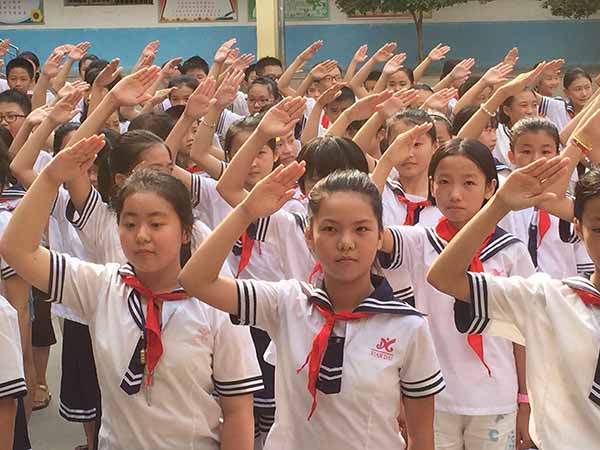 2017年9月27日下午,南昌現(xiàn)代外國(guó)語(yǔ)象湖學(xué)校一年級(jí)的同學(xué)們?cè)诓賵?chǎng)隆重舉行了入隊(duì)儀式。同學(xué)們個(gè)個(gè)小臉上洋溢著開(kāi)心燦爛的笑容,他們?cè)诶蠋煹膸ьI(lǐng)下,早早地來(lái)到操場(chǎng),等待著他們?nèi)松械谝淮我饬x重大的、激動(dòng)人心的時(shí)刻——加入光榮的少先隊(duì)組織。