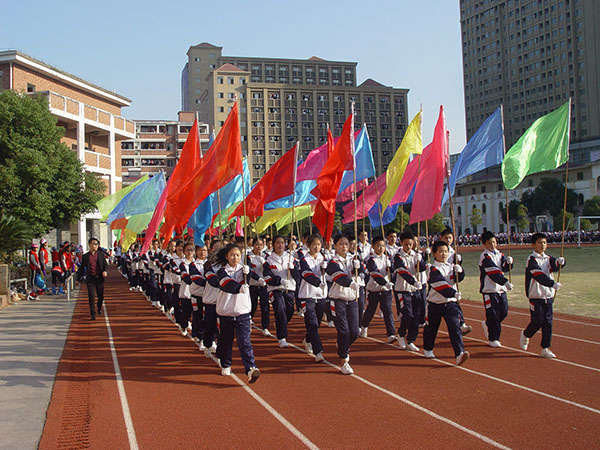 比賽結(jié)束后,李金玉校長致辭。他代表學(xué)校對運動會的順利舉行表示熱烈祝賀,對為大會的召開而辛勤工作、精心準(zhǔn)備、做出貢獻的老師、同學(xué)表示誠摯的謝意。同時也向本次大會的裁判員、教練員、運動員表示崇高的敬意!李校長從習(xí)總書記的體育強國夢講起,希望同學(xué)們通過運動會,從體育活動中感知體育的魅力,強健體魄,將青春與活力在賽場上釋放,也希望開展陽光體育活動,能讓學(xué)生牢固樹立終身鍛煉的體育健康理念,走進陽光,走進操場,走進自然,實現(xiàn)“每天鍛煉一小時,健康工作五十年,幸福生活一輩子”的美好愿望,奏響生命的最強音。最后,李校長從四個方面,對全校師生、運動員提出了相關(guān)要求。運動員代表胡雅瓊、裁判員代表糜霞依次在國旗下莊嚴(yán)宣誓。