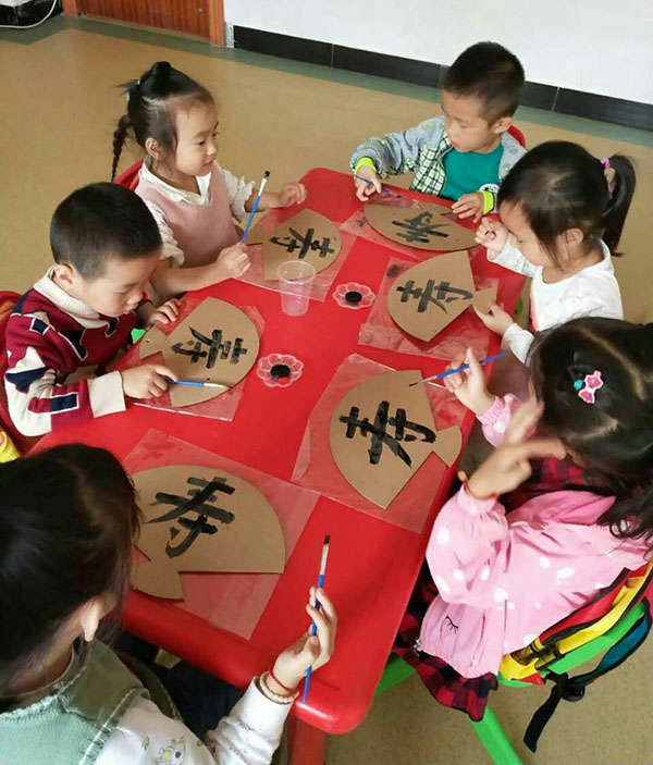 大班的小朋友們親手制作了壽字卡片,有的班級則是讓小朋友寫完壽字然后讓老師擺在地上,擺出壽字或者扇子的形狀;中班的小朋友則親手剪了壽桃卡片,老師在紙上畫好壽桃并叫小朋友把壽桃剪下來,最后由老師把壽桃黏在教室后面的展板上;小班的小朋友們師的組織下,回家給爺爺奶奶捶腿、捶背、捏肩、洗腳,引得爺爺奶奶們一陣歡笑。