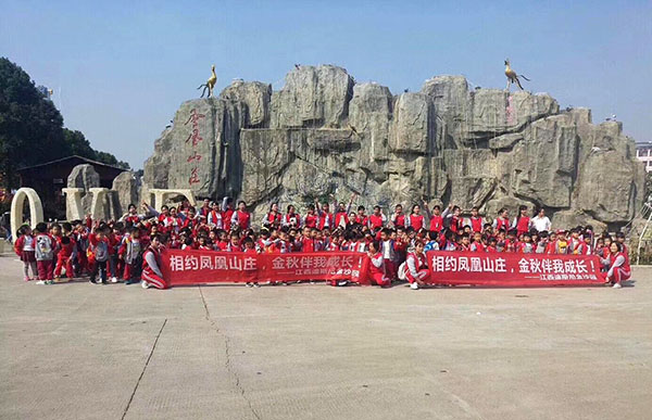 10月27日,美麗的鳳凰山莊里多了一群可愛的精靈,不時(shí)地出現(xiàn)一聲聲“叔叔阿姨好!爺爺奶奶好!”孩子們?cè)诶蠋煹膸ьI(lǐng)下,盡情地呼吸著新鮮空氣,沐浴著溫暖的陽光,觀賞著爭相開放的花兒,唱誦秋天的兒歌,感受著秋天的美景。農(nóng)家體驗(yàn)區(qū)是孩子們最盼望的活動(dòng),射箭、磨豆?jié){、捕魚、攀巖、獨(dú)木橋、神奇的造紙術(shù)、印刷術(shù)……只聽見孩子們的歡呼聲在空中回蕩;那有趣的卡丁車…把老師都一起帶入了那已經(jīng)逝去的童年時(shí)光;當(dāng)孩子們圍坐在暖暖的草地上,孩子們分享著幼兒園帶來的食物,盡情體驗(yàn)著集體生活的樂趣。在活動(dòng)結(jié)束前,老師們不失時(shí)機(jī)的進(jìn)行著環(huán)境保護(hù)的教育,我們的孩子認(rèn)真地在整理著他們休息的場(chǎng)地,不讓任何一個(gè)小垃圾被遺留下。
