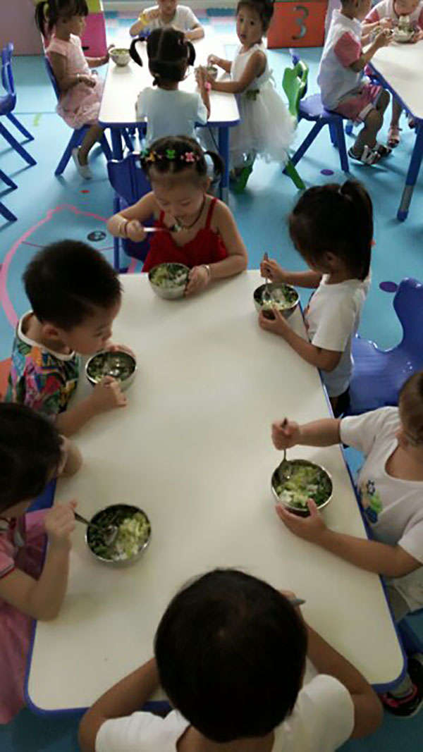 這學期,中班班有個“吃飯困難戶”,每到吃飯時間就一直坐在那里不動,任憑老師怎么哄、喂都不愿意張開小嘴巴,老師來向我傾訴煩惱。于是我在用餐的時候來到了中二班,看到這個叫郭俊杰的小男孩,正趴在桌上鼓著小嘴巴,把飯碗推到了桌子中間。我走過去,蹲下身子問他:“怎么了?不想吃飯嗎?”他看看我,點點頭。我又問:“這么好吃的雞腿,你不喜歡嗎?要怎樣你才喜歡吃飯呢?告訴老師好嗎?”又過了會兒,他小聲地說:“我想喝水。”我趕緊倒來了水,他“咕咚咕咚”一口氣喝了下去,然后終于張開了嘴巴,一口一口吃起了飯。而此后的每一天,飯前只要給他提供一點水,他都能很高興地把飯吃得干干凈凈。