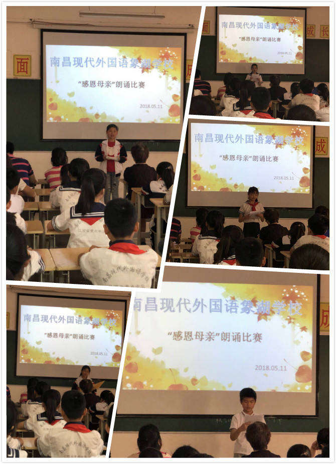 五月十一日下午二時許,南昌現代外國語象湖學校小學部六年級,在教學樓五樓多媒體教室舉行了以“感恩母親”為主題的朗誦比賽。