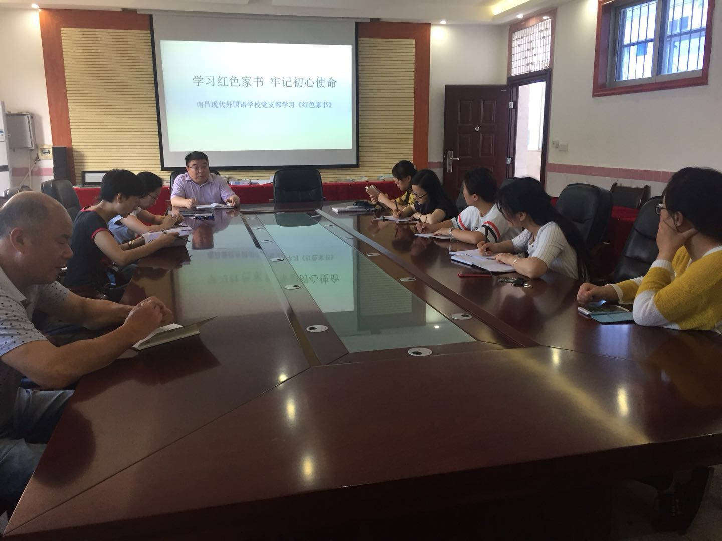 2018年5月16日行政樓會議室,南現外黨支部召開了“學習紅色家書,牢記初心使命”的學習會議。