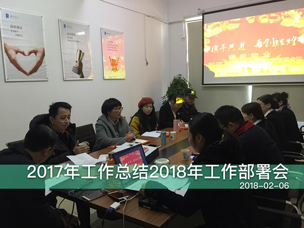 夏云紅總經理就此次參與述職報告的公司核心員工這一年來的工作給與了肯定。她指出2017年是睿府物業快速發展的一年,由2017年年初的十幾人到現在的四十余人,經歷了6號樓、2號樓的交房及裝修管理、綜合樓的招商出租,取得的成績與所有人的共同努力是分不開的,并提出2018年為公司“穩步發展年”,希望各部門在新的一年里要做好各方面工作:一是繼續加強團隊建設,讓員工有歸屬感、榮譽感;二是加強部門內部管理,優化并細化各個崗位的操作流程、服務流程等各項管理制度;三是加強員工培訓,制訂培訓計劃并落到實處;四是,在2月底,各部門必須完成對年度工作計劃、培訓計劃、經營指標、管理指標的分解工作,并貫徹落實到每一個責任人,加強資金管理做好預算工作。在新的一年里,希望大家攜手共進,力爭完成集團下達的2018年各項任務指標。