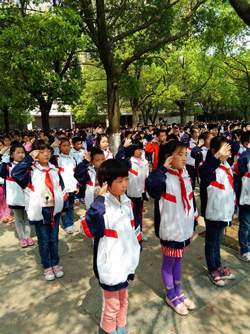今年是八一南昌起義暨中國人民解放軍建軍90周年,為了強化愛國主義教育,讓學生們弘揚和繼承紅色文化,樹立遠大志向,胸懷美好理想,培養(yǎng)愛祖國、愛人民、愛勞動、愛科學的精神。迎賓校區(qū)小學部的全體師生參加了本次晨會。在晨會上,少先隊大隊輔導員首先宣講了南昌八一起義的精神,希望他們在星星火炬的照耀下,在黨的陽光的沐浴下,學習革命先烈們不畏艱難險阻、勇往直前的奮斗精神;學習他們不怕磨難、頑強拼搏的堅強意志。讓他們懂得今天的幸福生活來之不易,在今后的日常生活、學習中繼承和發(fā)揚革命先輩的光榮傳統(tǒng),讓八一精神代代相傳,永放光芒。